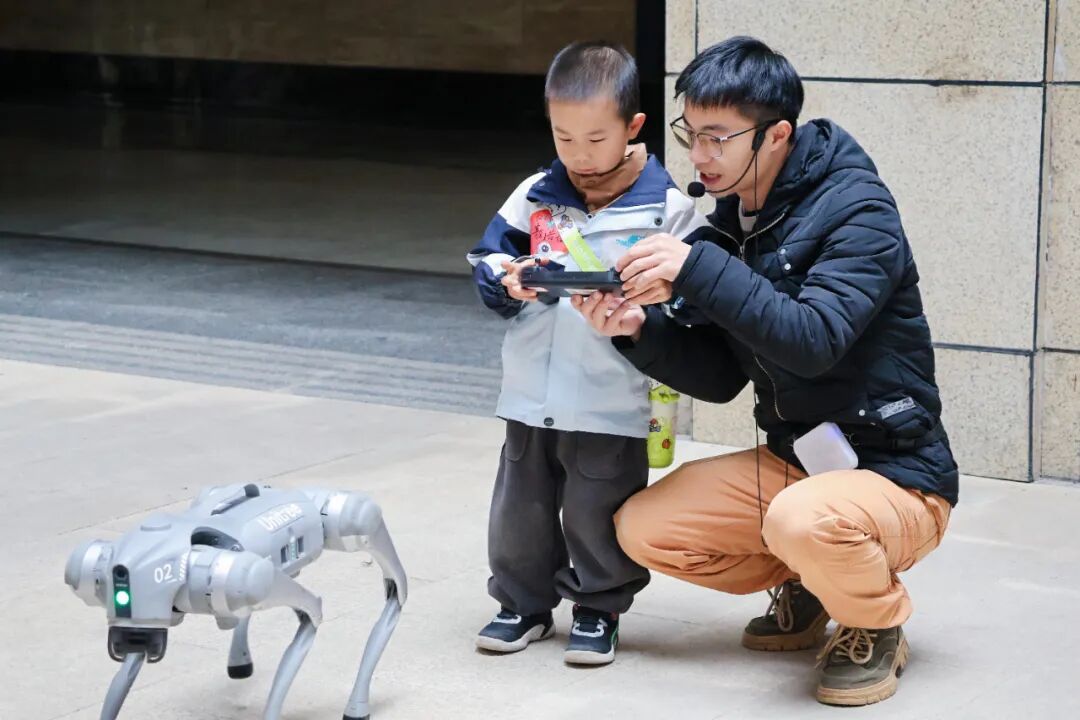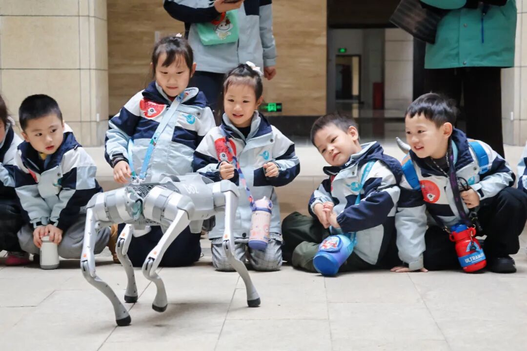 当机器狗有节奏摇摆“跳舞”时,孩子们也情不自禁地跟着手舞足蹈,科技与童真在此刻同频共振。